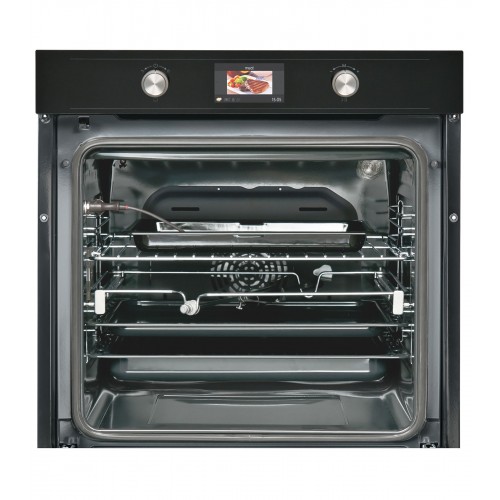 Телескопические направляющие позволят выдвигать противень в одно прикосновение, а каталитическая задняя стенка поможет Вам легче сохранять кухонную плиту в идеальном состоянии. Очищение задней стенки происходит путем автоматического расщепления жира во время приготовления пищи. Также в духовом шкафу предусмотрено размягчение загрязнений паром, которое облегчает очистку шкафа.