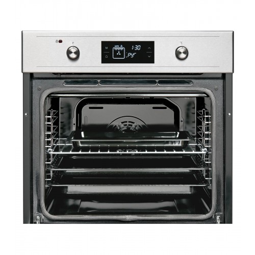 Функция пиролитической очистки (внутренняя поверхность духового шкафа покрыта специальной эмалью, устойчивой к высоким температурам. Во время пиролитической очистки температура внутри духового шкафа может достигать 475 С, что приводит к сжиганию остатков пищи. Остается лишь протереть духовку губкой смоченной в теплой воде)