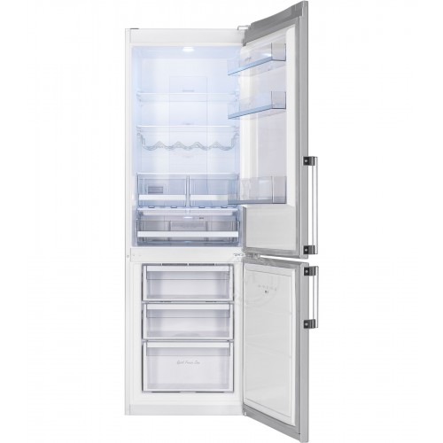 В морозильном отделении 3 выдвижных ящика из экологически чистого пластика, нижний предназначен для быстрой заморозки продуктов. Система заморозки No Frost. морозильную камеру не нужно размораживать, лед и иней удаляются автоматически, правильно замороженные продукты сохраняют свежесть на 95% дольше при длительном хранении.