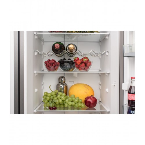Внутри холодильной камеры расположено пять высокопрочных полок из закаленного стекла с металлической окантовкой.