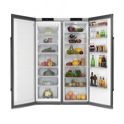 Представленная модель состоит из двух независимых друг от друга моделей, а именно морозильной камеры VF391SB и холодильника VF395SB. Эти две модели могут быть соединены друг с другом специальным соединительным комплектом.