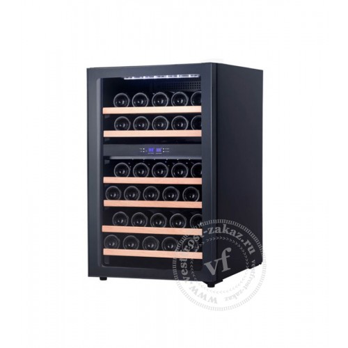 Шкаф вмещает до 32 стандартных винных бутылок типа «Бордо», которые могут располагаться в двух температурных зонах. Благодаря наличию двух зон, в этом шкафе возможно одновременно хранить белое и красное вина. В нижней зоне Вы можете разместить до 18 бутылок и установить температуру в пределах 10-18 градусов, а верхней до 14 бутылок и установить температуру 5-10 градусов. Также возможно установить единую температуру 5-18 градусов для обеих зон для хранения только одного типа вин.